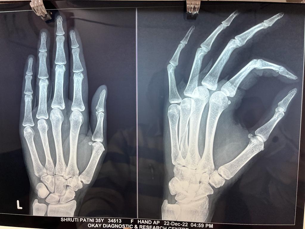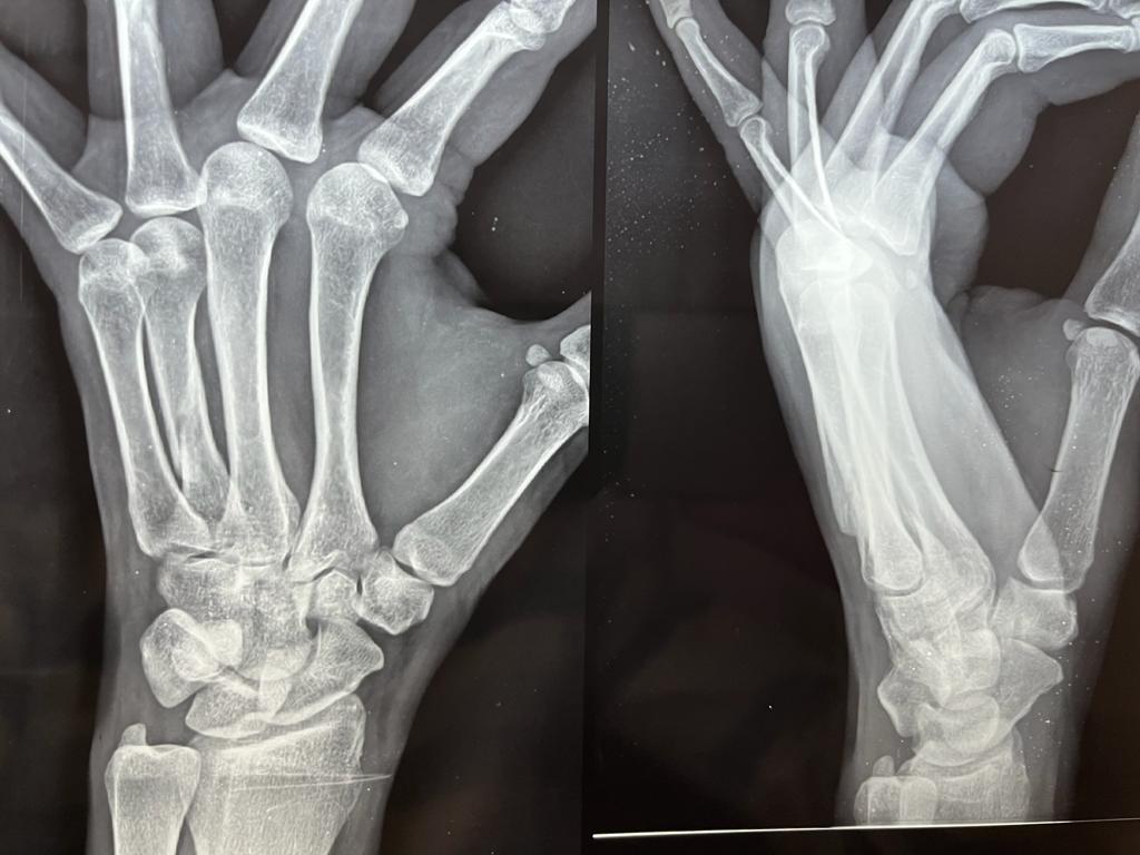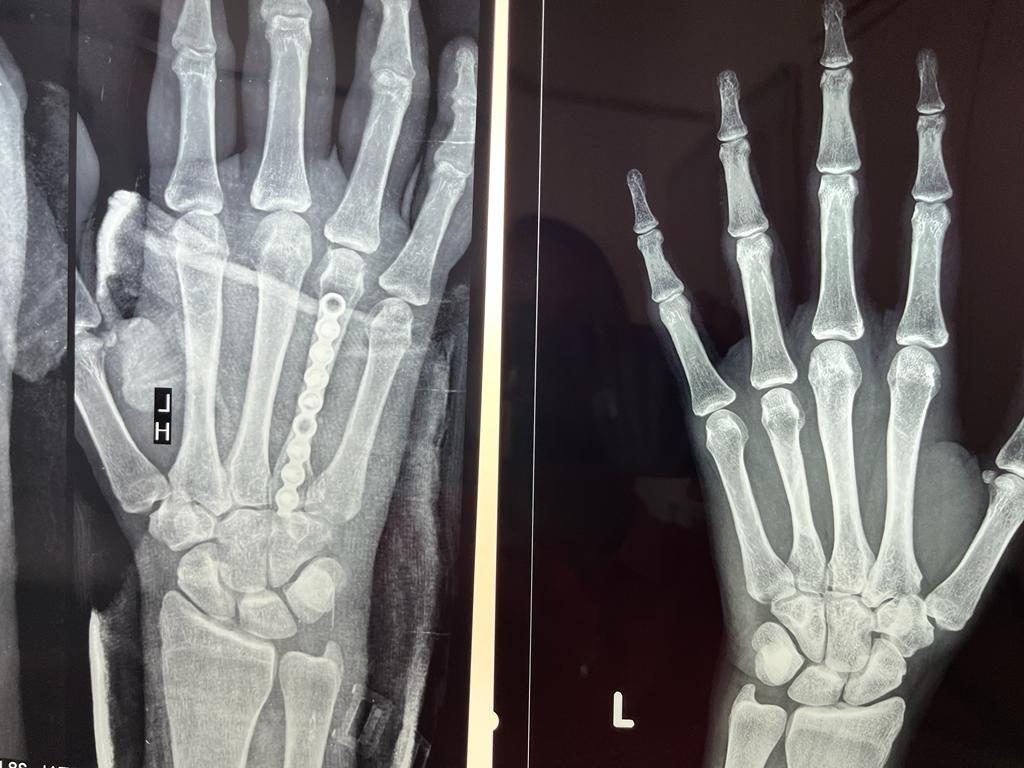 Pre and post of pics of 3 months old fracture 4 th metacarpal with pain shortening of finger and loss of knuckle prominence