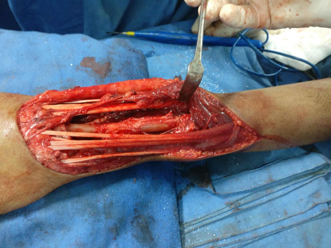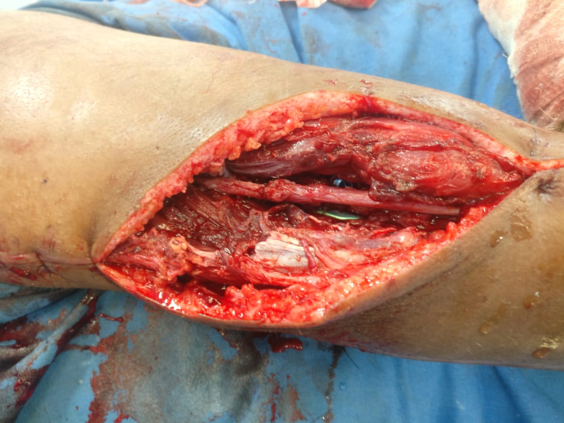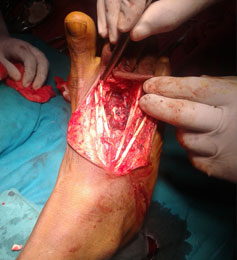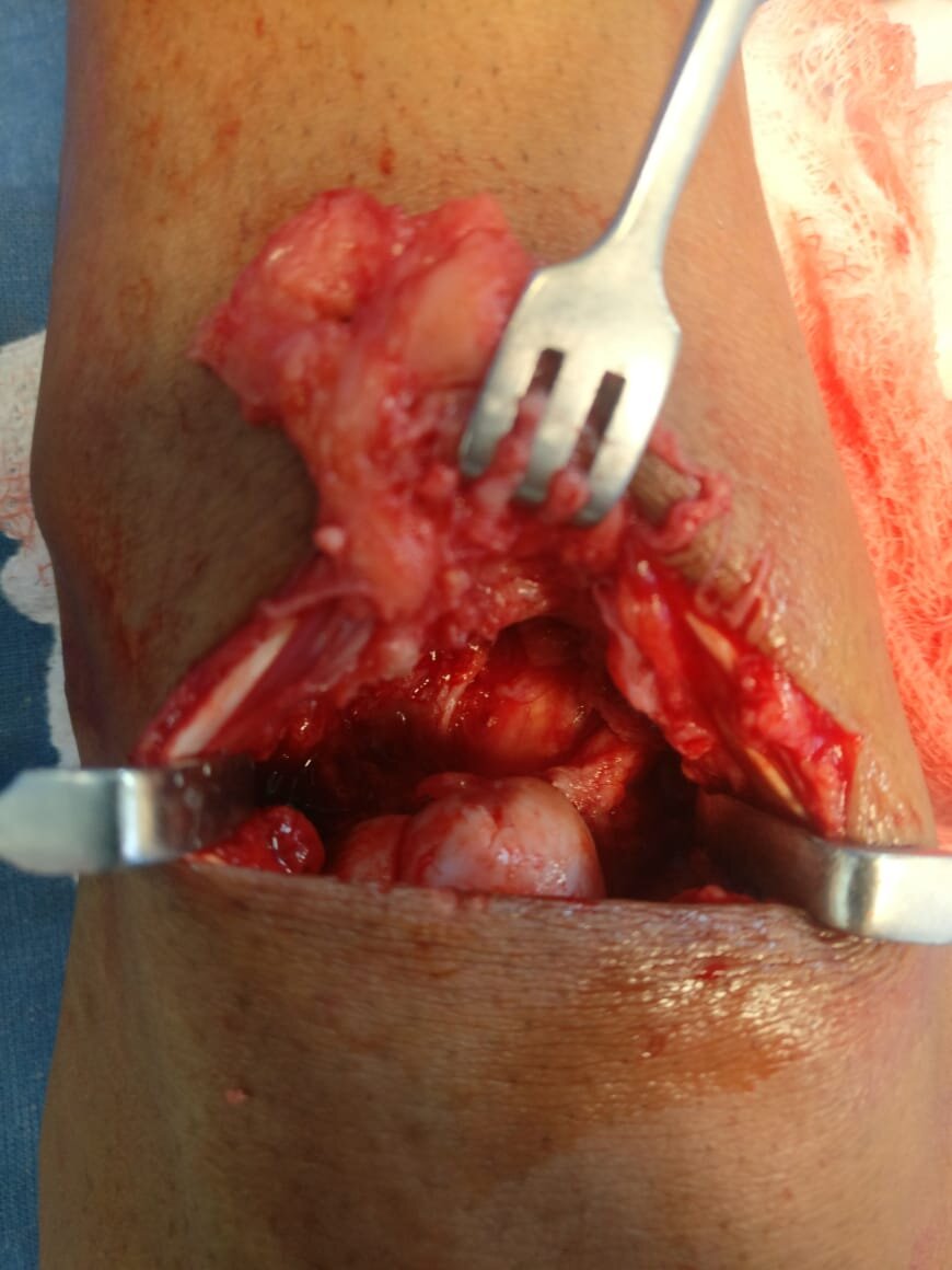 Excision of tumour proximal fibula with savings of common peroneal nerve